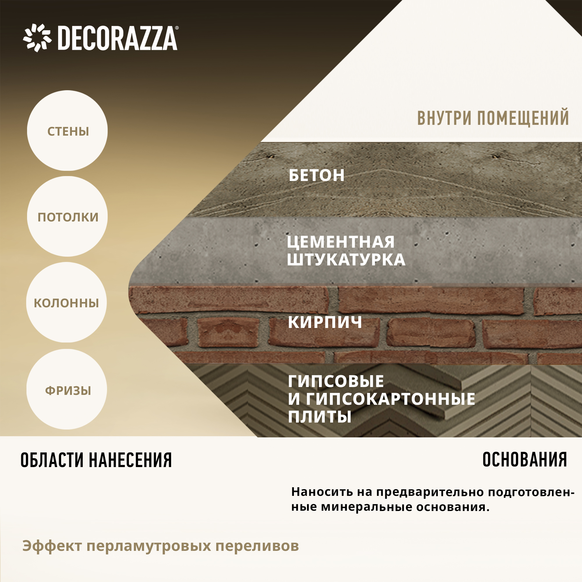 Для создания декоративного покрытия с эффектом перламутровых переливов без швов и соединений на стенах, потолках, колоннах, фризах и других архитектурных деталях внутри помещений.