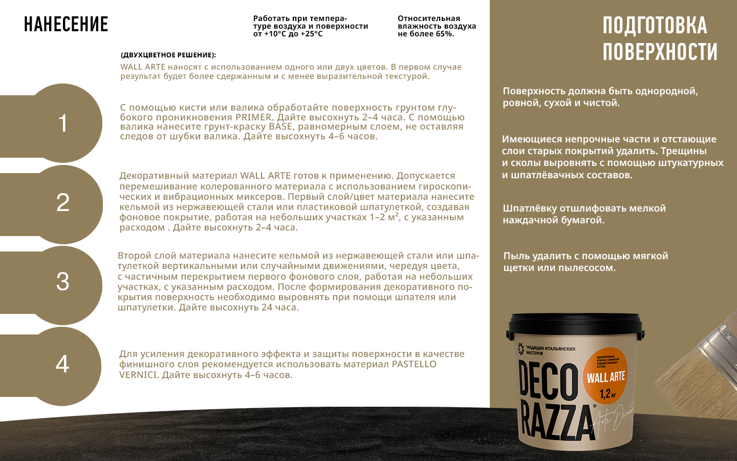 Качество подготовки поверхности должно соответствовать категории К4 по СП 71.13330.2017.Способ нанесения