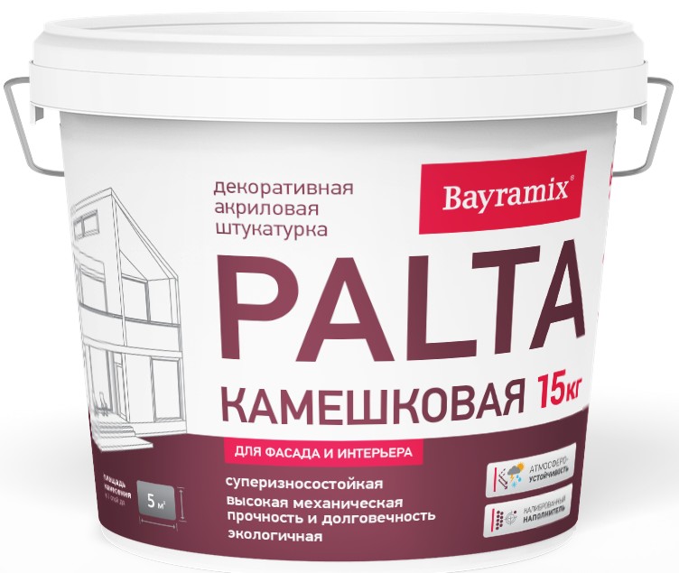 Камешковая штукатурка Palta средний Bayramix - Атмосферостойкая камешковая декоративная штукатурка для внутренних и наружных работ