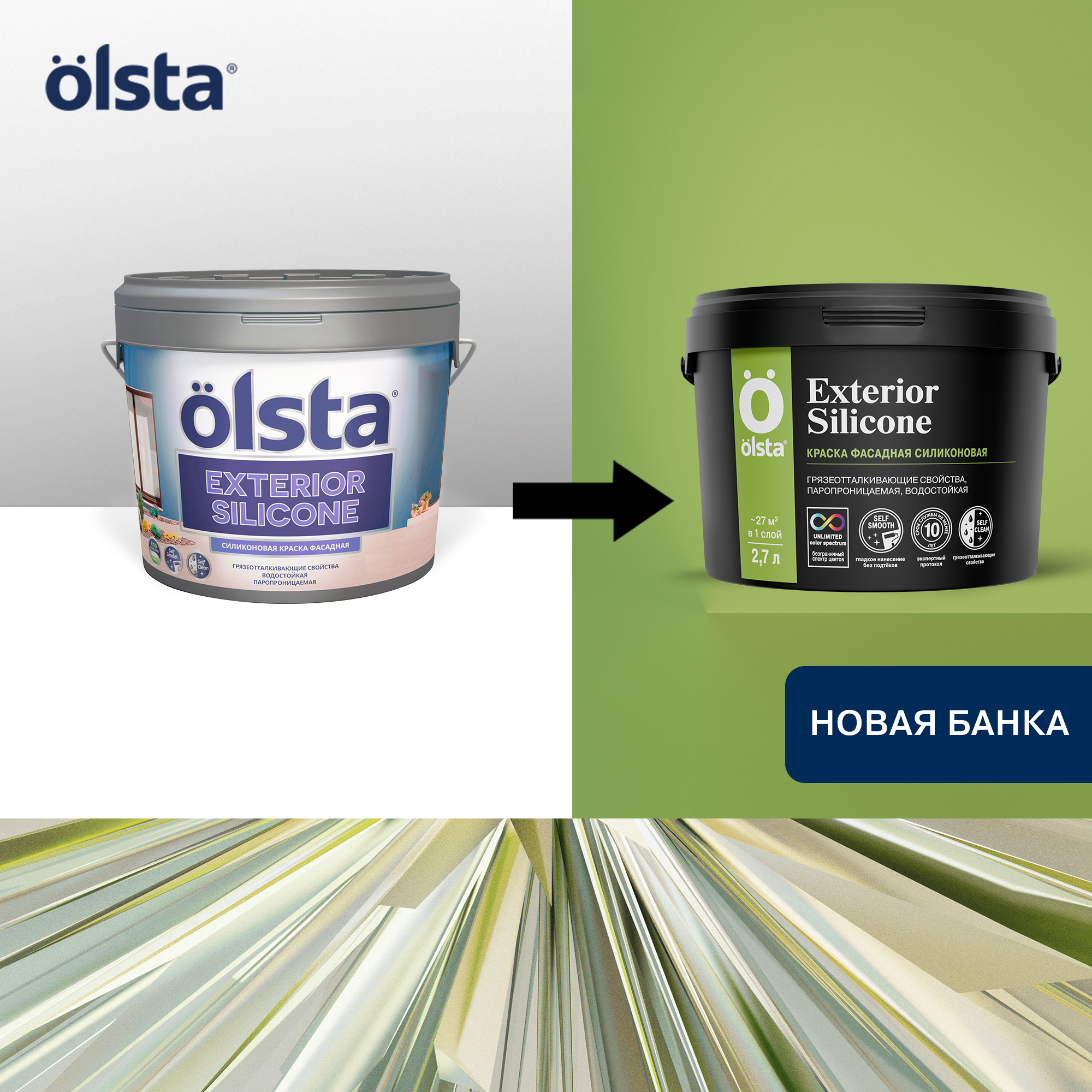 Краска фасадная EXTERIOR SILICONE OLSTA - Фасадная краска OLSTA EXTERIOR SILICONE — это высококачественное покрытие, специально разработанное для защиты и украшения внешних поверхностей зданий. Благодаря своей силиконовой основе, эта воднодисперсионная краска обладает исключительными свойствами самоочищения, что позволяет поверхности оставаться чистой даже в сложных городских условиях.