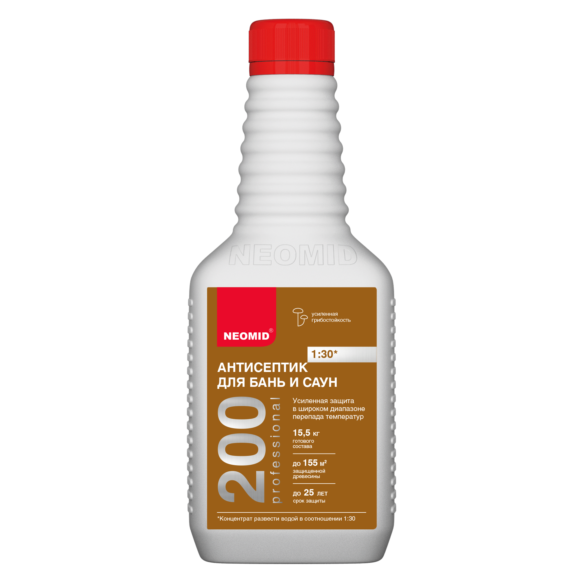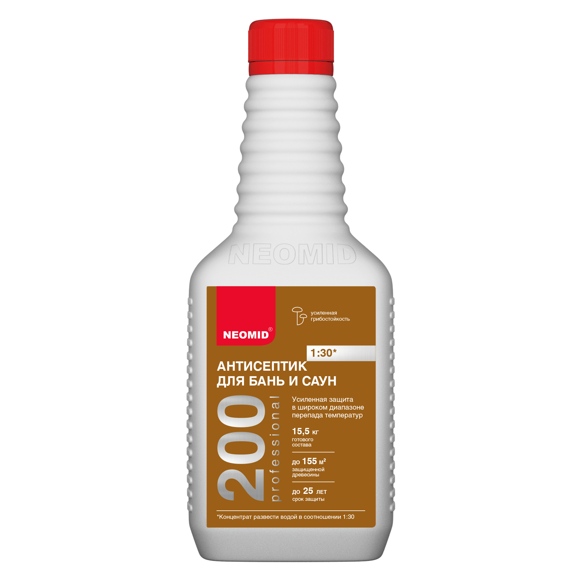 NEOMID 200 деревозащитный концентрат для бани Neomid - Антисептическая пропитка для защиты древесины внутри бань и саун, включая полки и скамейки, в условиях частого перепада температур и повышенной влажности