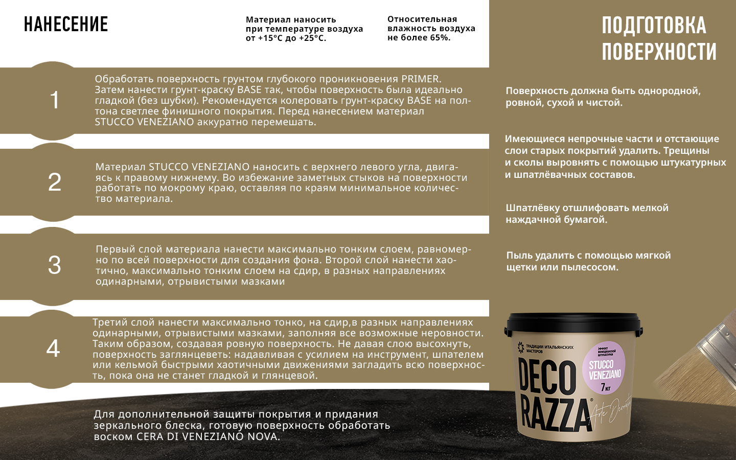 Венецианская штукатурка Stucco Veneziano Decorazza - Экологичная венецианская штукатурка с мраморным наполнителем и восковыми добавками