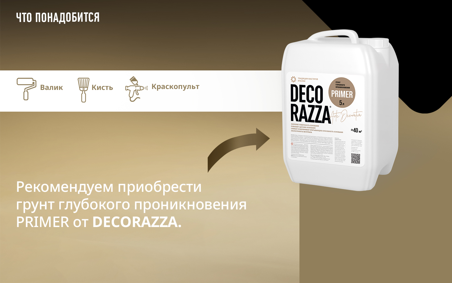 2. Обработайте поверхность грунтом глубоко проникновения Primer валиком, кистью.